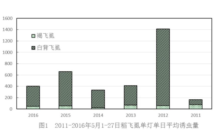 5月份以來(lái),受南方頻繁強(qiáng)降雨影響,華南、西南東部、江南稻區(qū)監(jiān)測(cè)到2個(gè)明顯稻飛虱同期突增峰。其中,5月10-14日主降華南北部和江南南部稻區(qū),廣西靈川、融安等地峰期蟲(chóng)量超萬(wàn)頭;5月18-23日主降華南北部、西南東部和江南南部稻區(qū),大部地區(qū)峰期蟲(chóng)量超千頭,廣西巴馬、田陽(yáng)、天峨,福建同安,貴州望謨,云南師宗、廣南等地峰期蟲(chóng)量超萬(wàn)頭,廣西隆林,云南元江、屏邊等地峰期蟲(chóng)量超10萬(wàn)頭,燈下誘蟲(chóng)總量中等。據(jù)全國(guó)水稻病蟲(chóng)監(jiān)測(cè)區(qū)域站178個(gè)站點(diǎn)統(tǒng)計(jì),5月1-27日稻飛虱單燈單日平均誘蟲(chóng)量比2015年同期減少38.7%,比2014年同期增加20.2%,與2013年同期接近(圖1)。