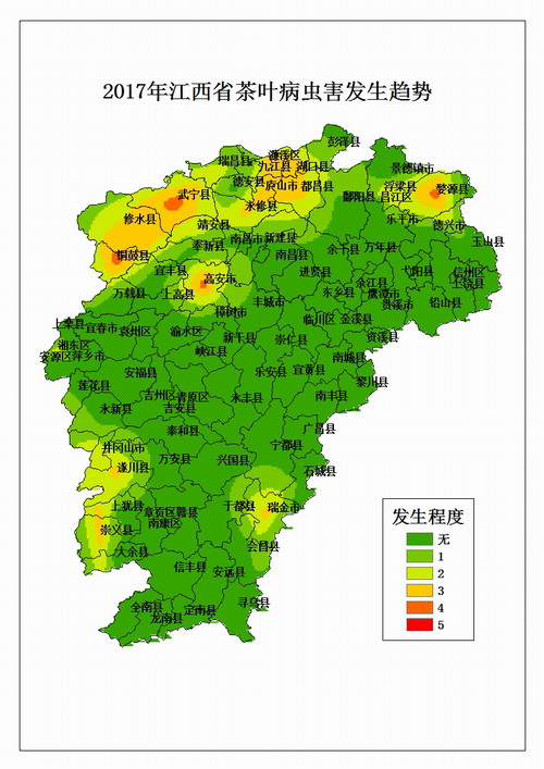 2、氣象條件:去冬今春氣溫偏高,有利于茶樹病蟲害越冬,氣象部門預測3-5月我省雨日偏多,利于茶小綠葉蟬、茶尺蠖、茶炭疽病的發(fā)生。