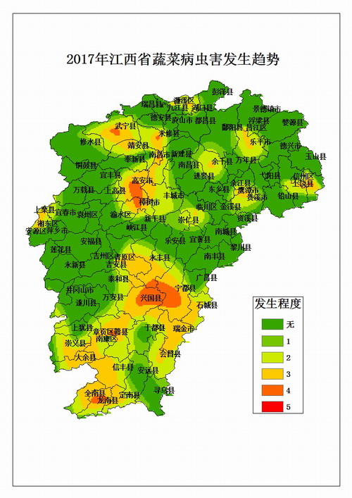 2、氣候因素:據(jù)氣象部門預(yù)測,4~6月汛期雨量偏多,有利于疫病、枯萎病、青枯病等病害發(fā)生;7~9月盛夏高溫日數(shù)略偏多,伏秋期平均雨量偏少,有明顯伏秋干旱發(fā)生,有利于夜蛾類、紅蜘蛛、瓜絹螟等害蟲發(fā)生。