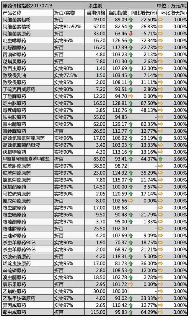 2017年7月下旬殺蟲劑原藥價(jià)格行情