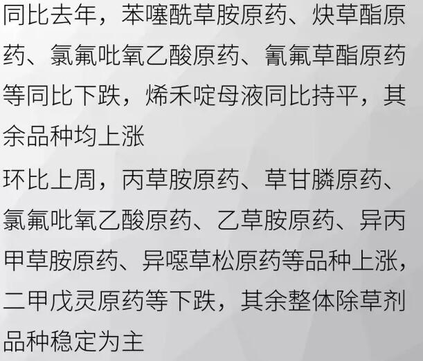 8月初國(guó)內(nèi)農(nóng)藥原藥除草劑市場(chǎng)行情