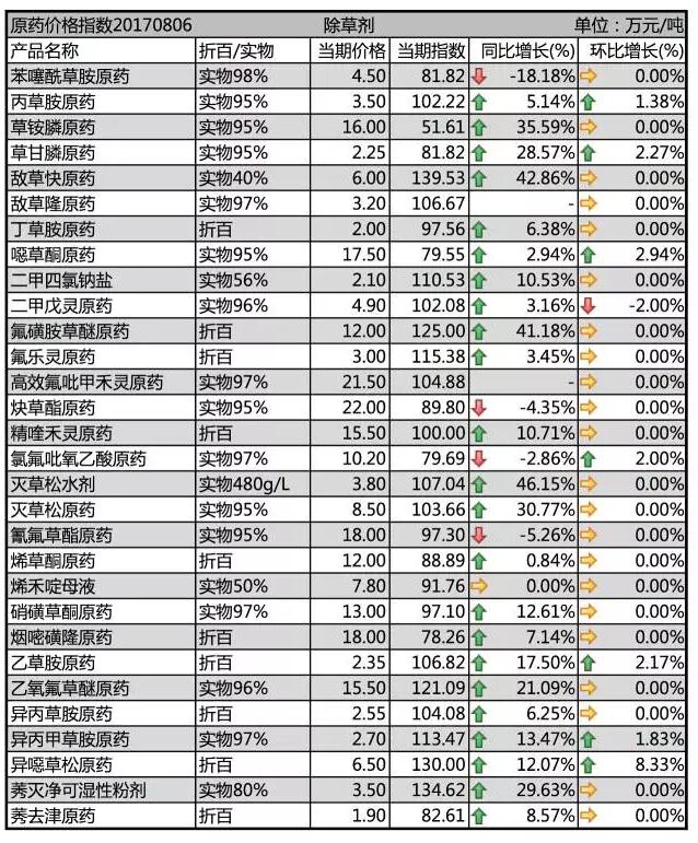 2017年7月下旬除草劑原藥價(jià)格行情