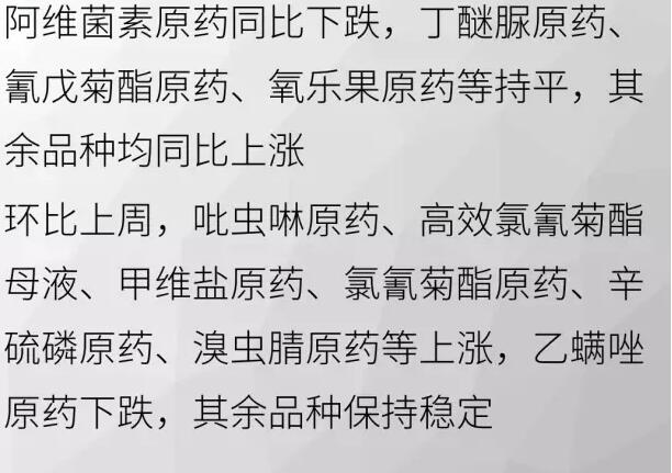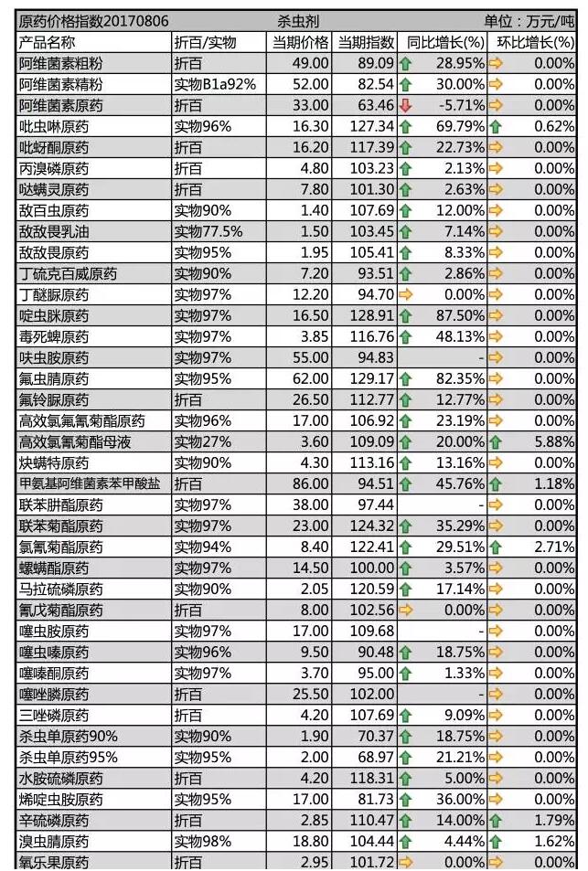 2017年7月下旬殺蟲劑原藥價格行情