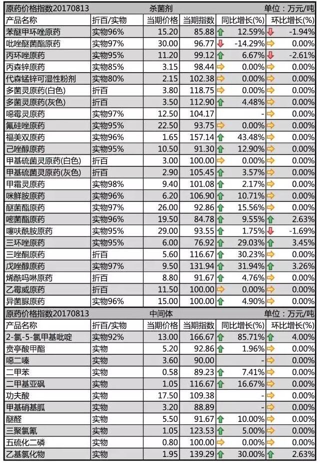 8月初國內(nèi)農(nóng)藥原藥殺菌劑市場行情