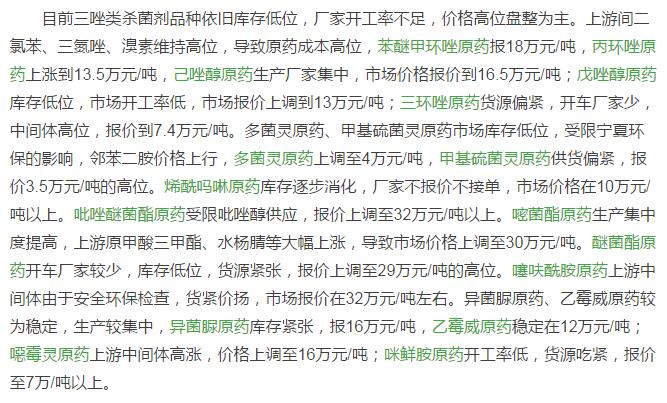 9月下旬國(guó)內(nèi)農(nóng)藥原藥殺菌劑價(jià)格行情