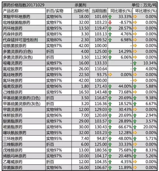 10月下旬農(nóng)藥原藥殺菌劑價(jià)格行情