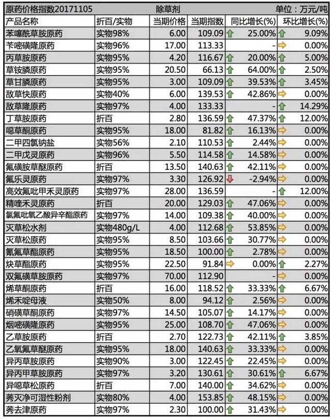11月初國內(nèi)農(nóng)藥原藥除草劑市場行情