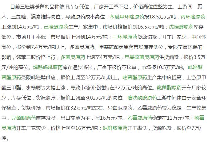 10月末農(nóng)藥原藥殺菌劑市場(chǎng)行情