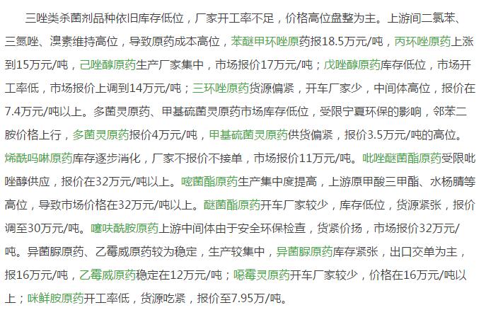 11月初國內(nèi)農(nóng)藥原藥殺菌劑市場行情