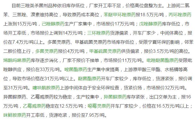 多款原藥貨源緊張價(jià)格提升