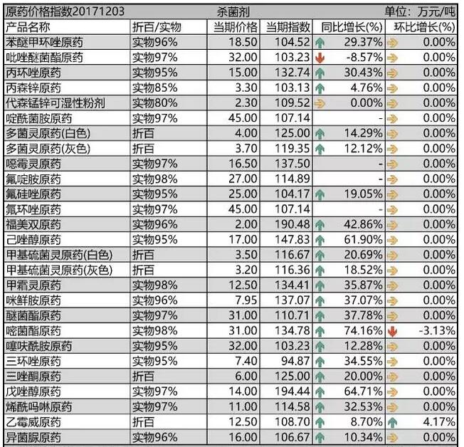 12月初國內(nèi)農(nóng)藥原藥殺菌劑價(jià)格行情