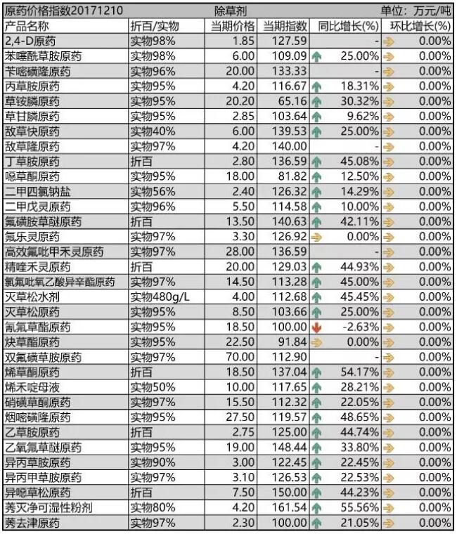 12月初國(guó)內(nèi)農(nóng)藥原藥除草劑價(jià)格行情