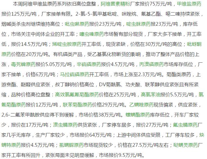 11月底國(guó)內(nèi)農(nóng)藥殺蟲劑原藥價(jià)格行情