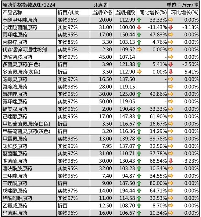 12月初國內農藥原藥殺菌劑價格行情