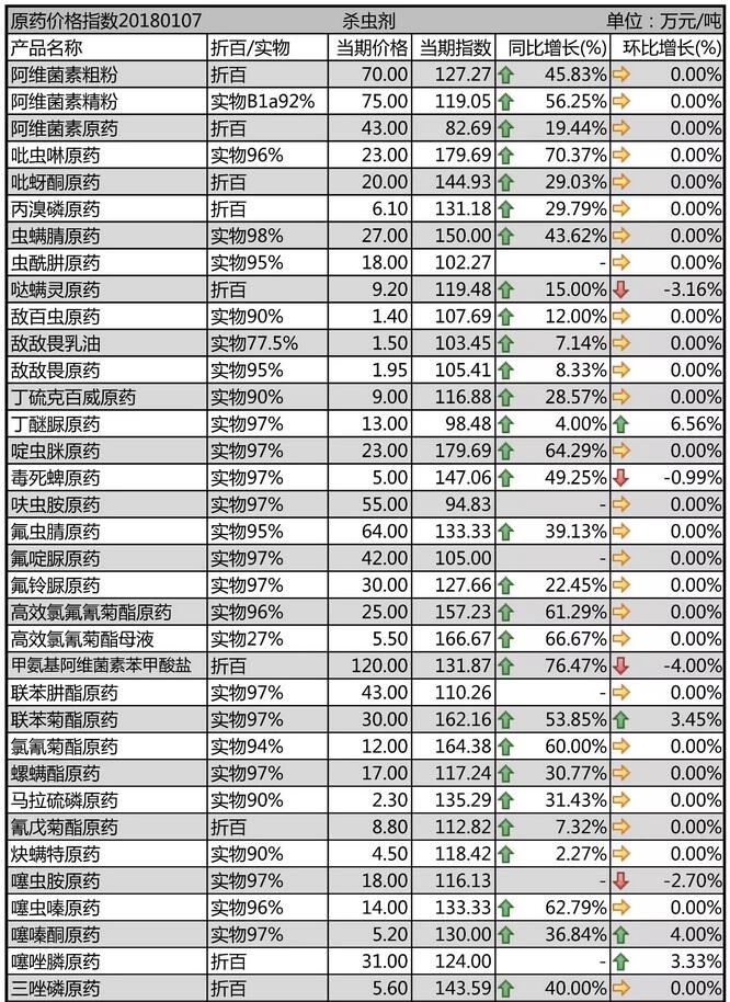 1月上旬國內(nèi)農(nóng)藥殺蟲劑原藥價格行情