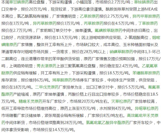 12月底國內(nèi)農(nóng)藥原藥除草劑市場行情