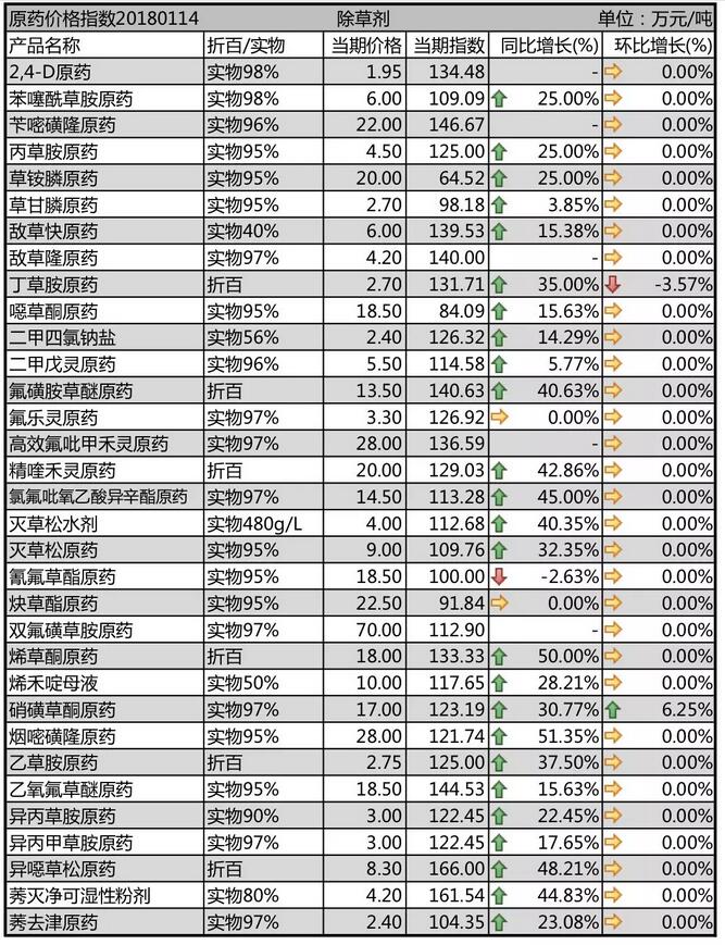 1月上旬國內(nèi)農(nóng)藥除草劑原藥價格行情