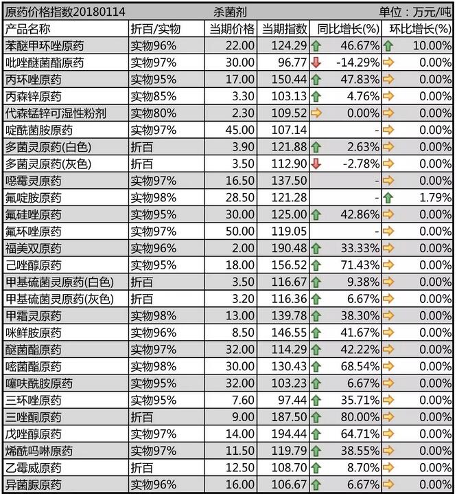 1月中旬農(nóng)藥原藥殺菌劑價格行情