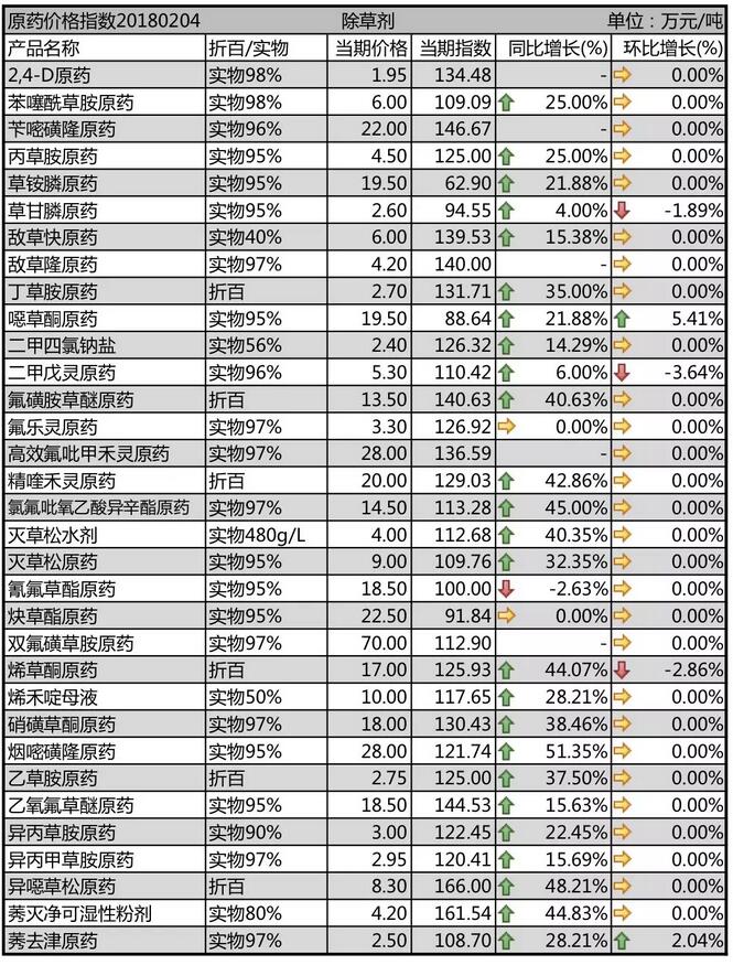 2月初國內(nèi)農(nóng)藥原藥除草劑市場行情