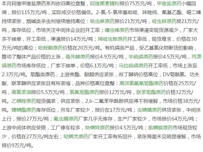 1月底國(guó)內(nèi)農(nóng)藥原藥殺蟲劑價(jià)格行情