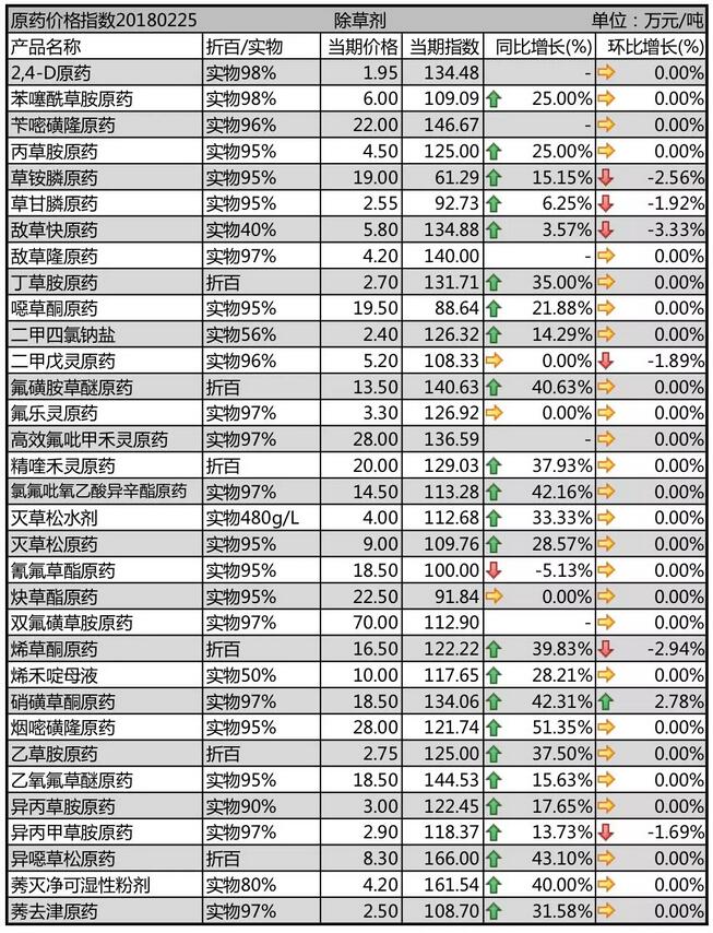 2月底國內(nèi)農(nóng)藥原藥除草劑價格行情