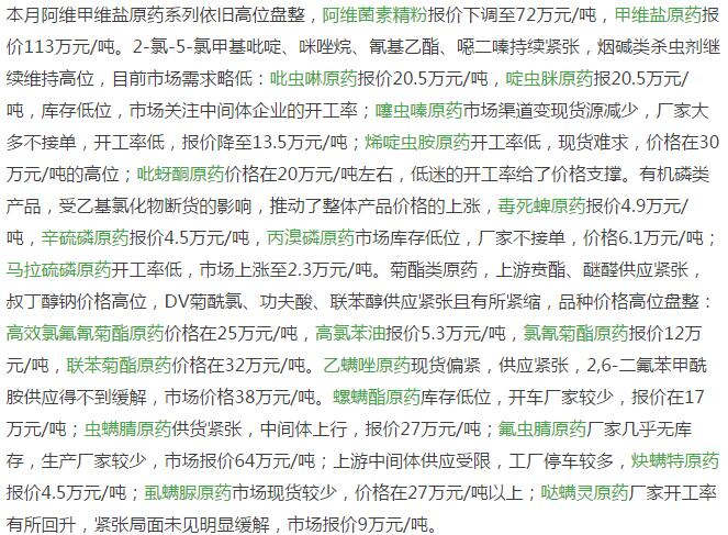 1月底國(guó)內(nèi)農(nóng)藥原藥殺蟲劑價(jià)格行情