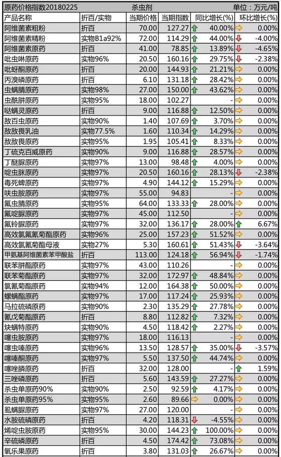 2月底國(guó)內(nèi)農(nóng)藥原藥殺蟲劑價(jià)格行情