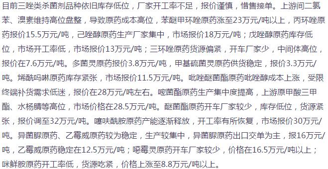 3月中旬國(guó)內(nèi)農(nóng)藥原藥殺菌劑價(jià)格行情