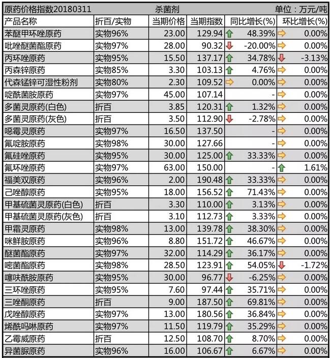 3月上旬國(guó)內(nèi)農(nóng)藥原藥殺菌劑價(jià)格行情