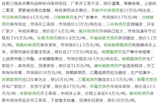 多款原藥貨源緊張價(jià)格提升