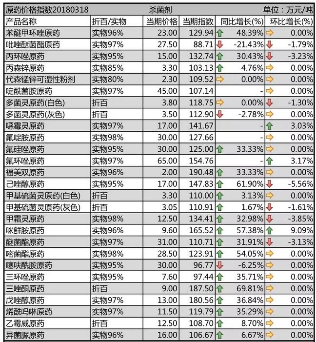 3月第三周國內(nèi)農(nóng)藥原藥殺菌劑價(jià)格行情