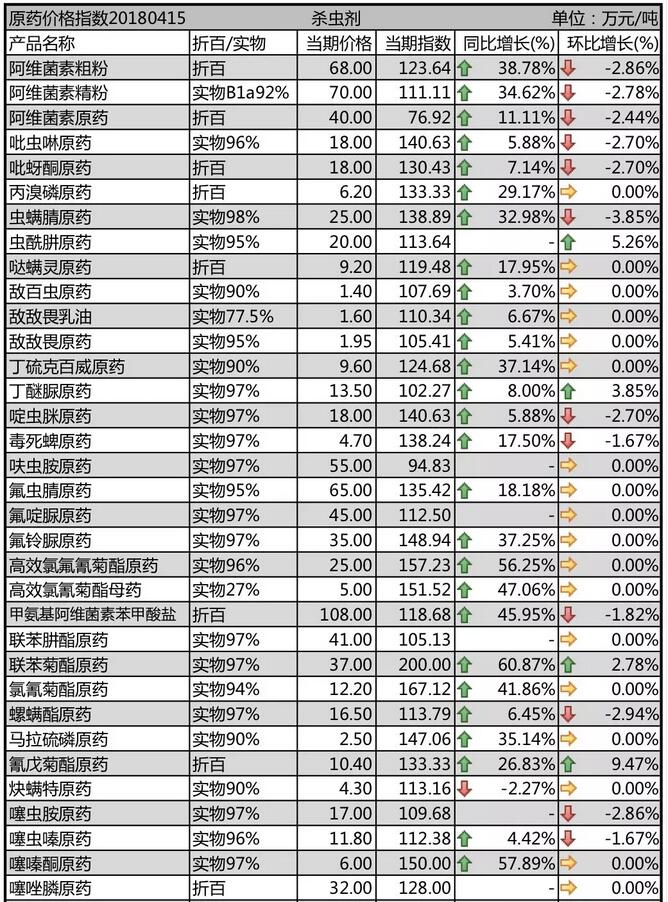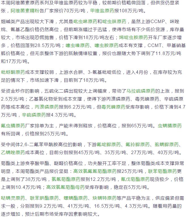 4月初國內(nèi)農(nóng)藥原藥殺蟲劑價(jià)格行情