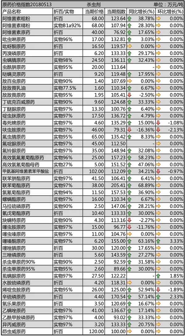 5月中旬國內農藥原藥殺蟲劑價格行情
