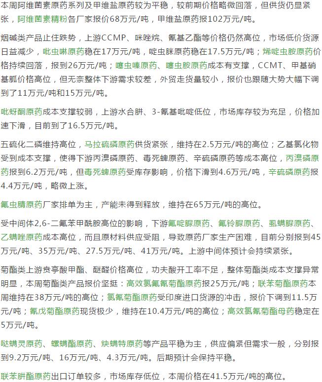 4月下旬國內農藥原藥殺蟲劑市場行情