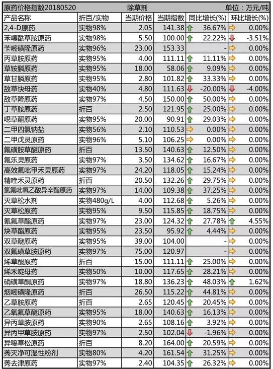 5月中旬國(guó)內(nèi)農(nóng)藥原藥除草劑價(jià)格行情