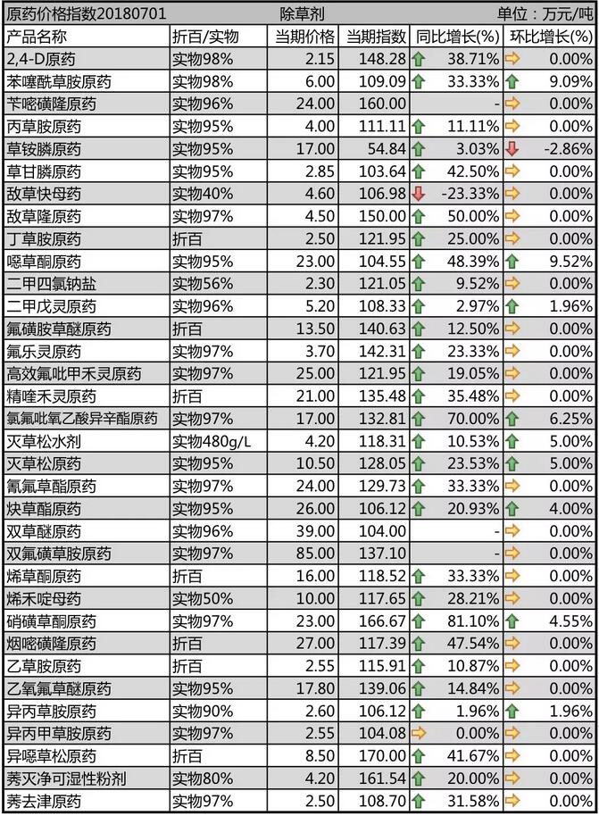 7月初國內(nèi)農(nóng)藥原藥除草劑行情走勢