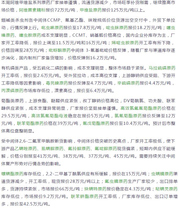 6月中旬國內(nèi)農(nóng)藥原藥殺蟲劑價格行情