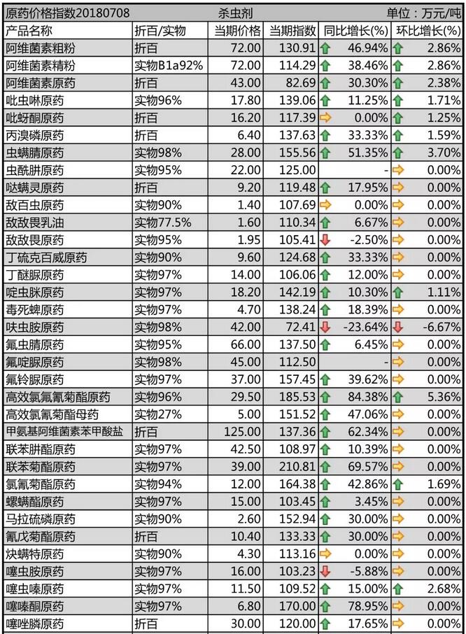 7月初國內(nèi)農(nóng)藥原藥殺蟲劑行情走勢