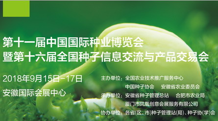 經(jīng)農(nóng)業(yè)部的批準(zhǔn),第十一屆中國(guó)國(guó)際種業(yè)博覽會(huì)暨第十六屆全國(guó)種子信息交流與產(chǎn)品交易會(huì)擬于2018年9月15-17日在安徽省合肥市舉辦,F(xiàn)將有關(guān)事項(xiàng)通知如下: