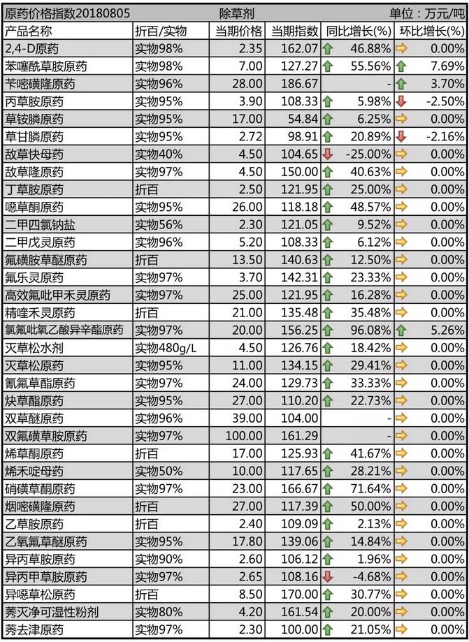 7月上旬國(guó)內(nèi)農(nóng)藥原藥除草劑行情走勢(shì)
