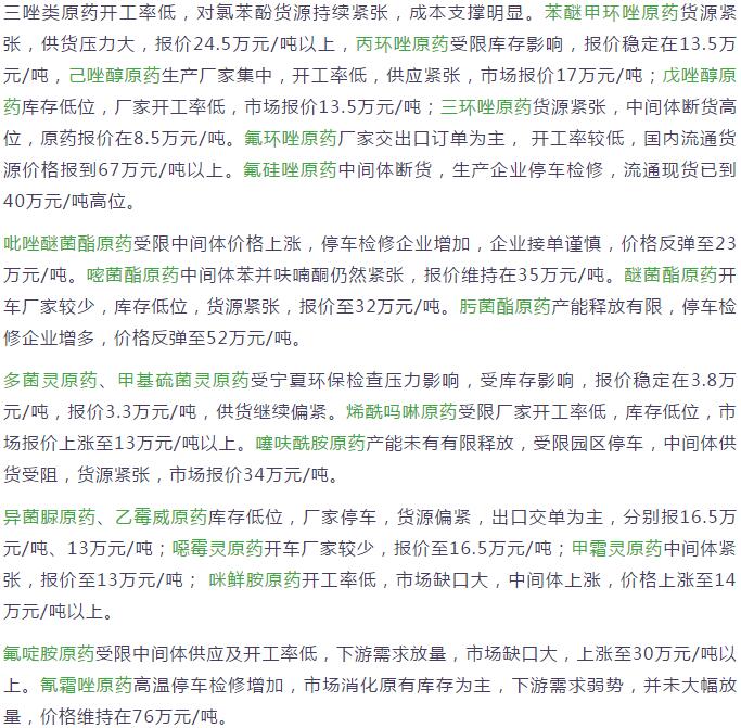 多款原藥貨源緊張價(jià)格提升
