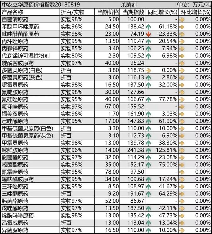 8月中旬國內(nèi)農(nóng)藥市場(chǎng)殺菌劑原藥價(jià)格走勢(shì)