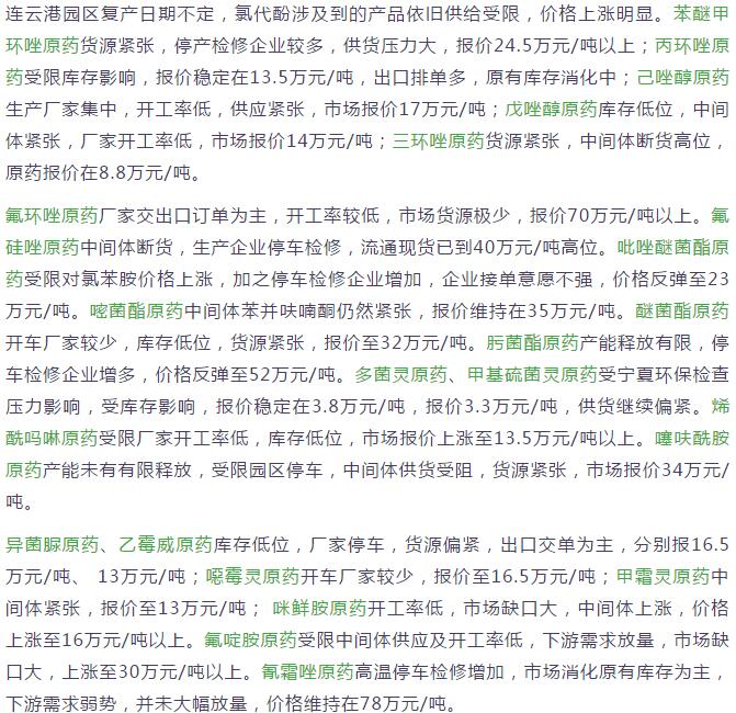 8月末國(guó)內(nèi)農(nóng)藥原藥殺菌劑市場(chǎng)行情走勢(shì)