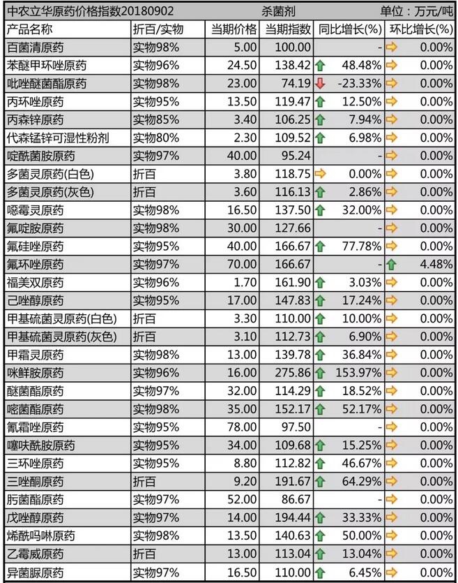 9月初國(guó)內(nèi)農(nóng)藥原藥殺菌劑市場(chǎng)價(jià)格走勢(shì)