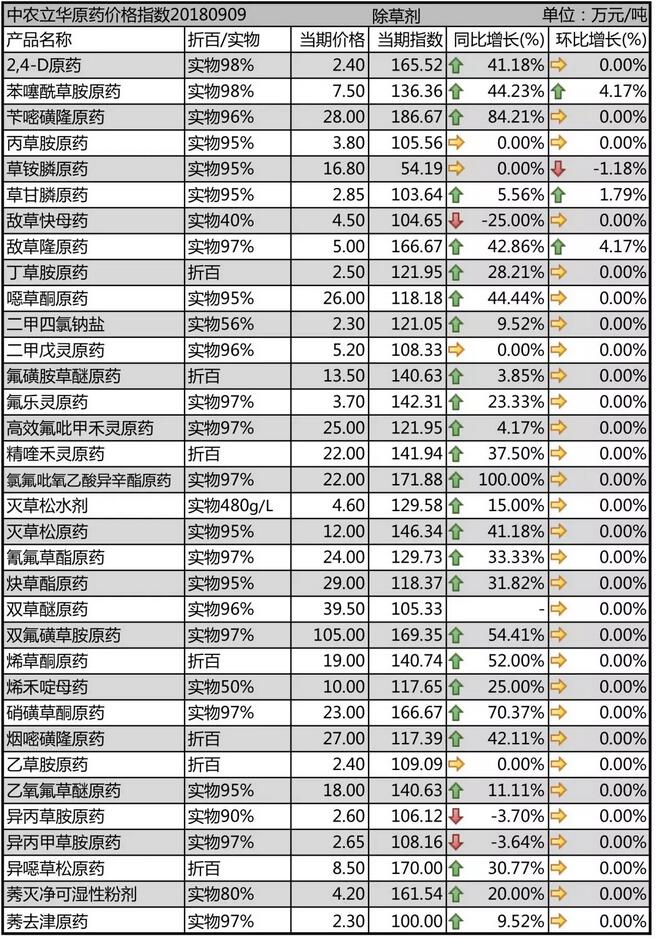 9月初國(guó)內(nèi)農(nóng)藥原藥除草劑市場(chǎng)價(jià)格走勢(shì)