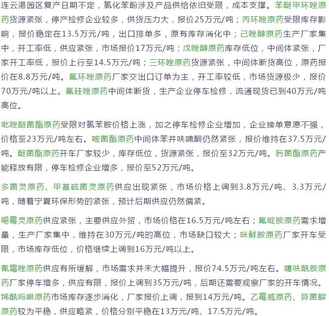 8月末國內(nèi)農(nóng)藥原藥殺菌劑市場行情走勢