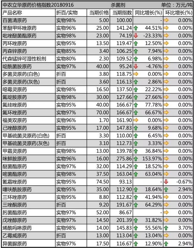 9月初國內(nèi)農(nóng)藥原藥殺菌劑市場價格走勢