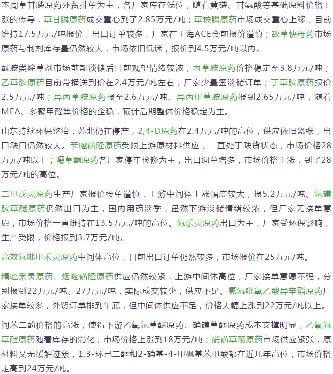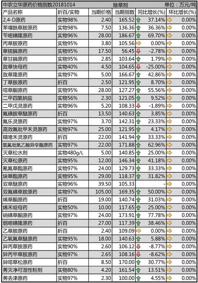 10月中旬國內(nèi)農(nóng)藥原藥除草劑市場(chǎng)行情走勢(shì)