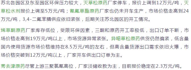 多款原藥貨源緊張價(jià)格提升