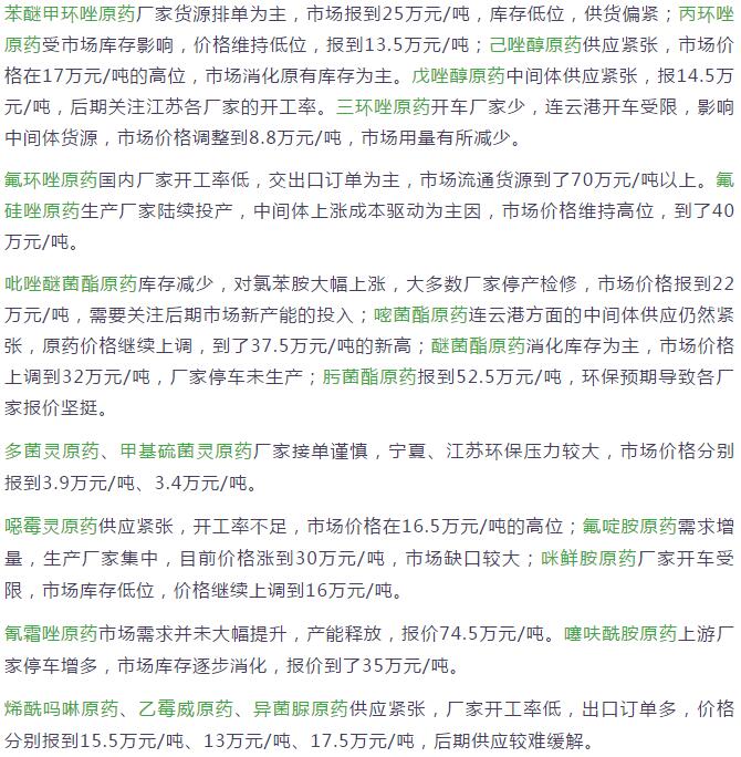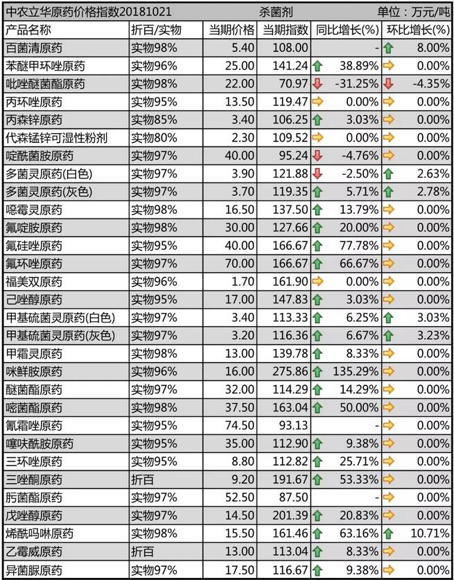 10月中旬國(guó)內(nèi)農(nóng)藥原藥殺菌劑市場(chǎng)行情走勢(shì)
